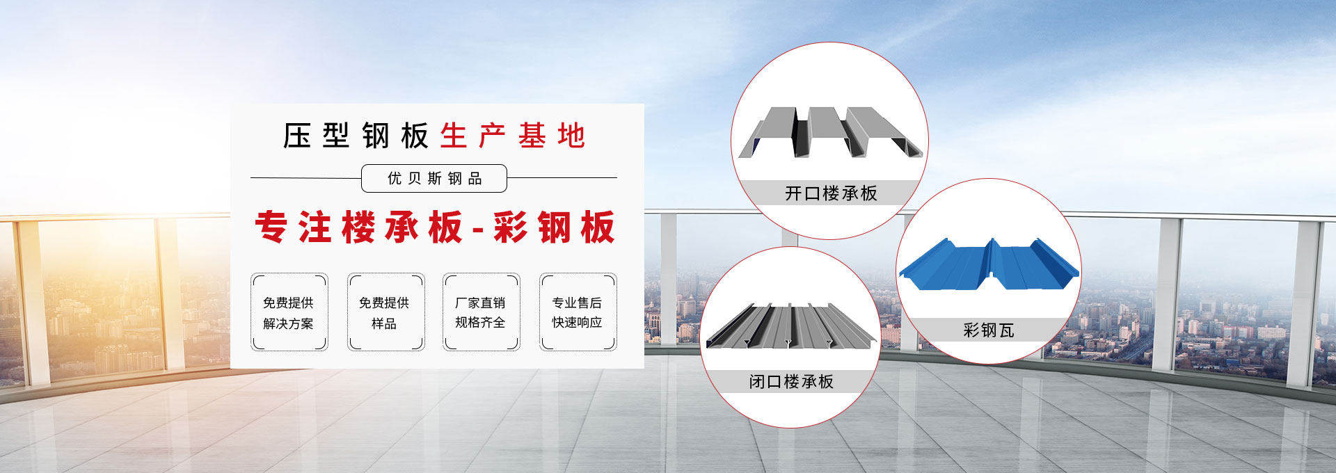 無錫優(yōu)貝斯鋼品有限公司主要生產(chǎn):樓承板,鋼承板,免澆筑樓承板,壓型鋼板,彩鋼板,閉口樓承板,開口樓承板,縮口樓承板價格優(yōu)惠及相關(guān)的鋼結(jié)構(gòu)輔材。 優(yōu)貝斯始終追蹤并處于鋼結(jié)構(gòu)建筑及其圍護系統(tǒng)技術(shù)的發(fā)展前沿,預(yù)制金屬屋墻板面和樓承板系統(tǒng)。優(yōu)貝斯擁有的技術(shù)和豐富實踐一直為客戶提供質(zhì)量的產(chǎn)品、鋼建筑系統(tǒng)解決方案和貼心的服務(wù)。